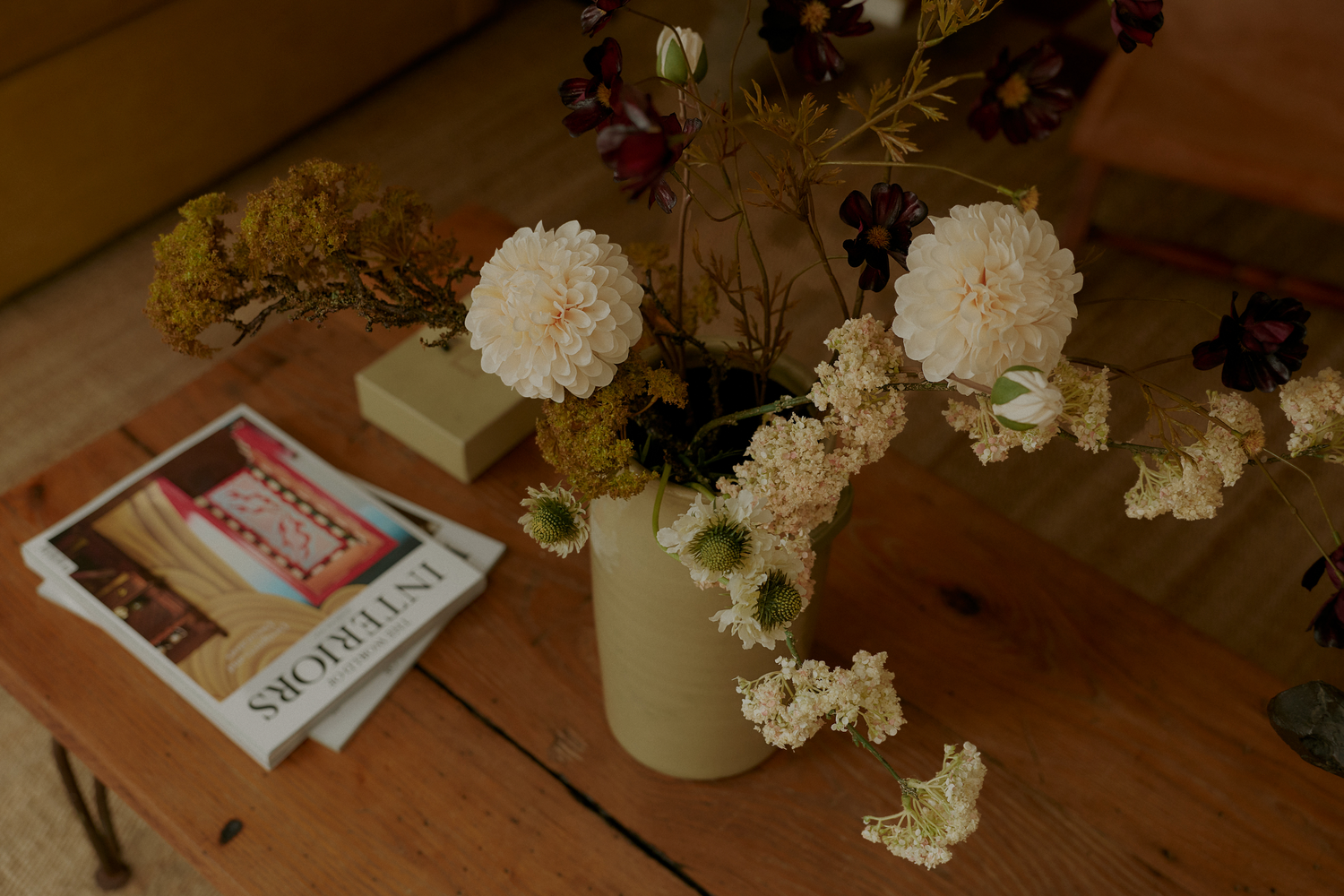 Loose, slightly wild, and full of contrast. This arrangement blends nostalgic elements like willow branches with the soft freshness of viburnum, balanced by earthy browns and muted greens.