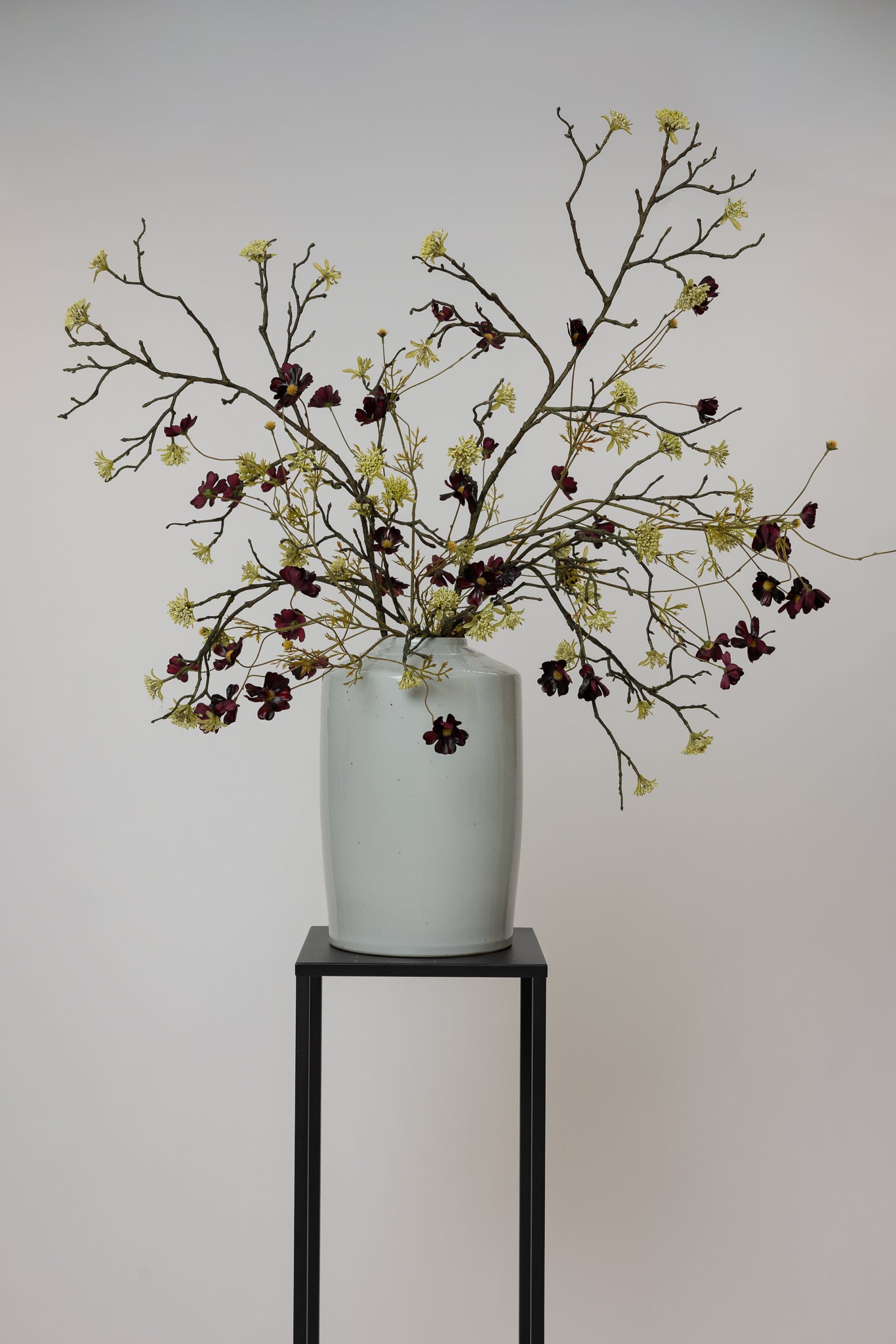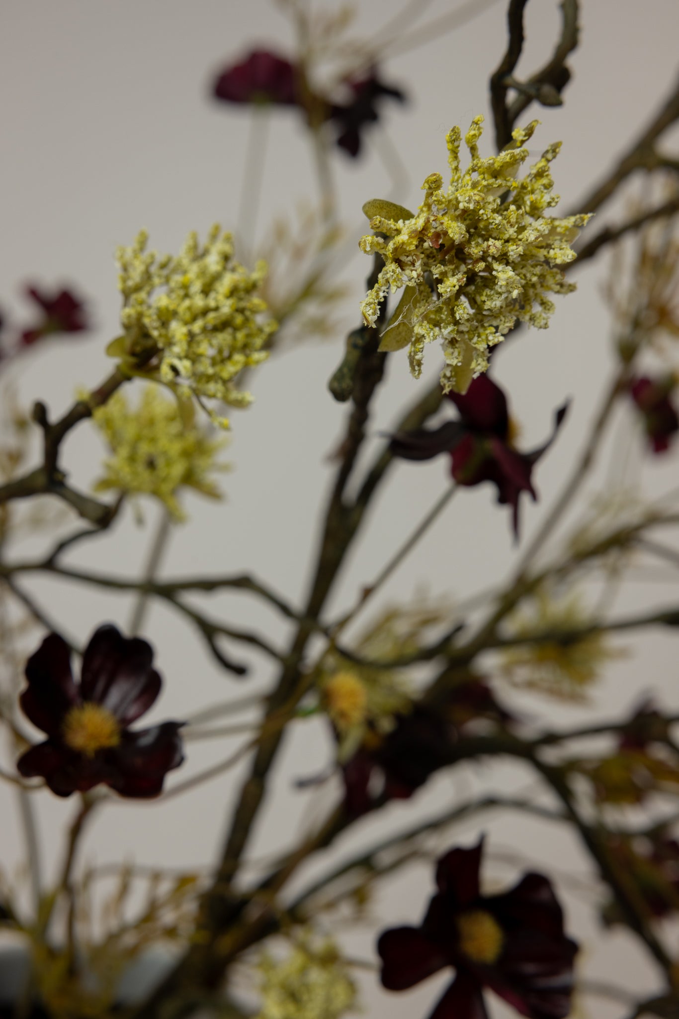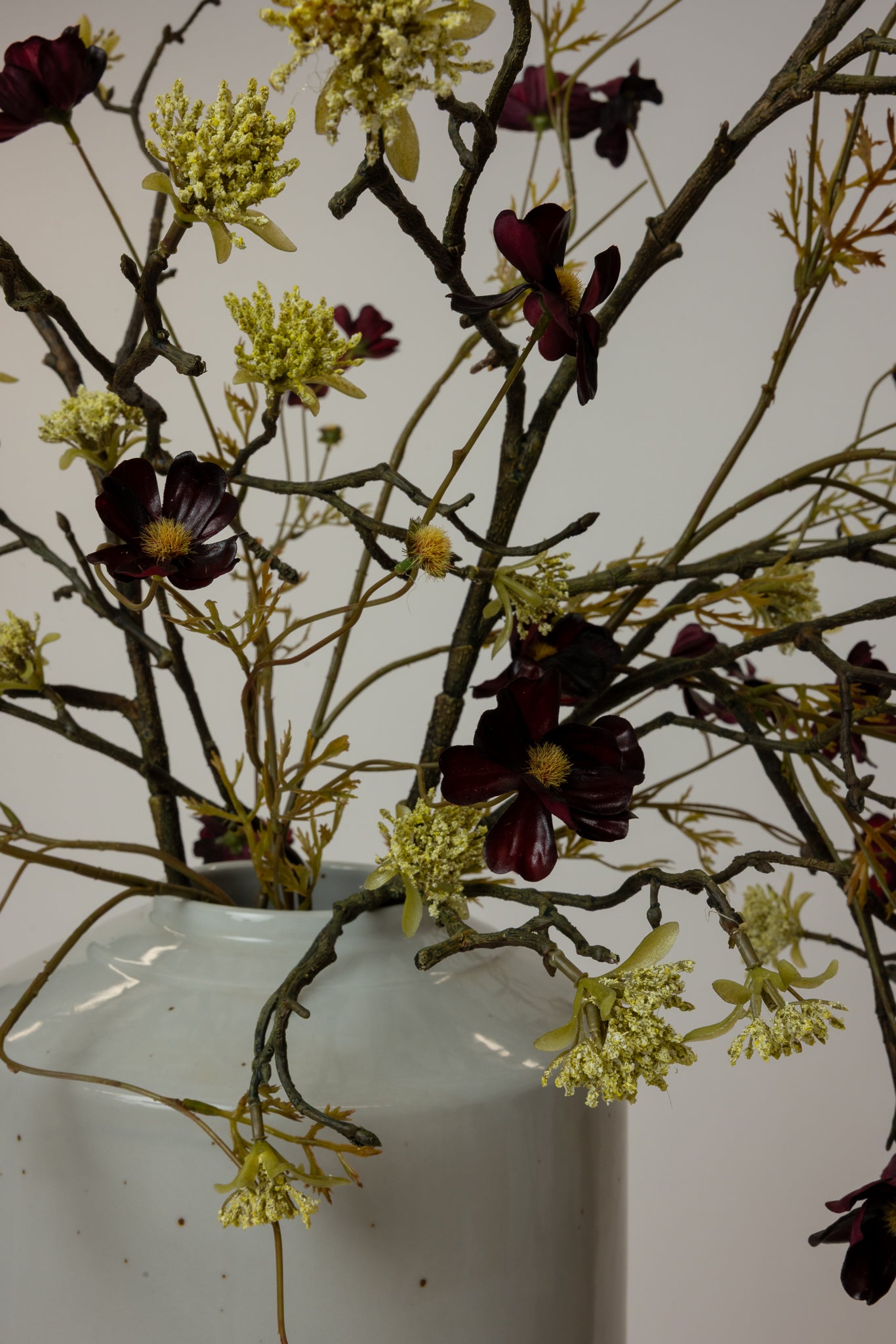 Tall, expressive branching paired with deep burgundy cosmos creates a bold, architectural centerpiece. Perfect for hotel lobbies, living rooms, or any space that calls for a dramatic focal point.